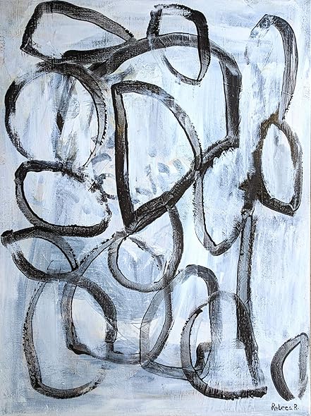 Black White Hand Drawn Acrylic Painting Abstract Art