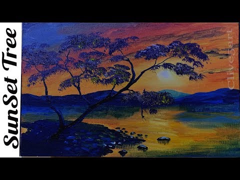 Easy Steps To Paint A Sunset Sky And A Tree In Acrylic