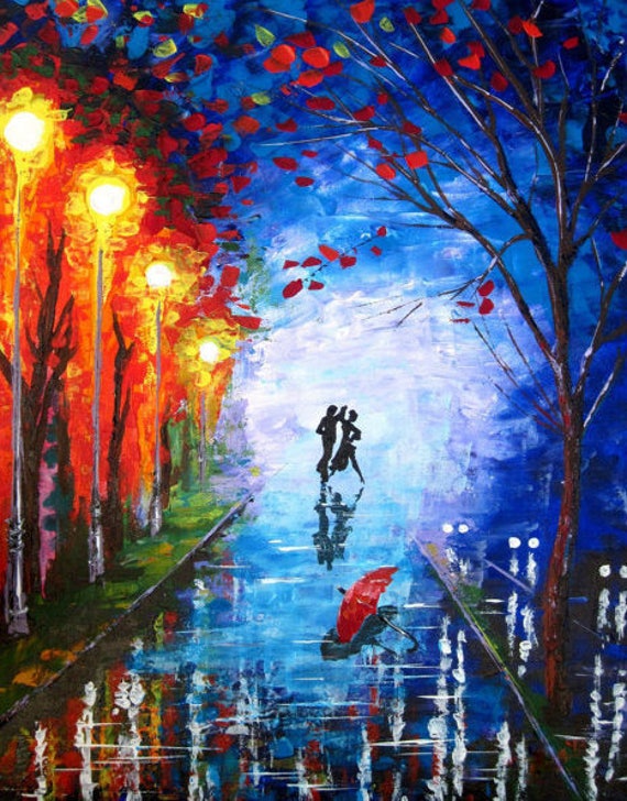 Us 2915 48 Offhand Painted Acrylic Abstract Painting Couples With Umbrella Rainy Night Landscape Oil Painting On Canvas Living Room Home Decor In
