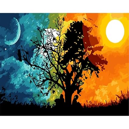Amazoncom Landscape Green Tree Sunshine Day And Night