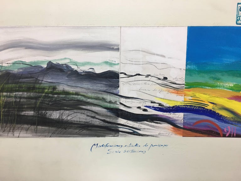 Rainbow Color Abstract Landscape Acrylic Painting Fan Brush