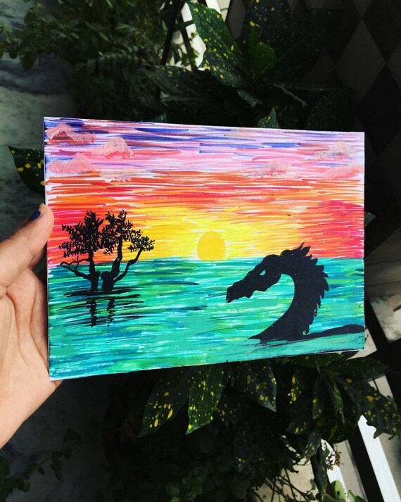 Dragon Painting Rainbow Sky Painting Sea Painting Ocean Painting Sea Dragon Painting Original Paintingacrylic Painting