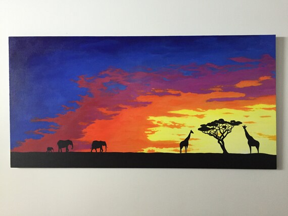 Savanna Sunset Original Realismsilhouette Acrylic Painting 24x48
