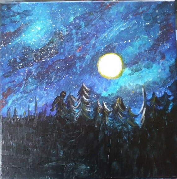Bigfoot Sasquatch Night Time Forest Space Painting Or Print
