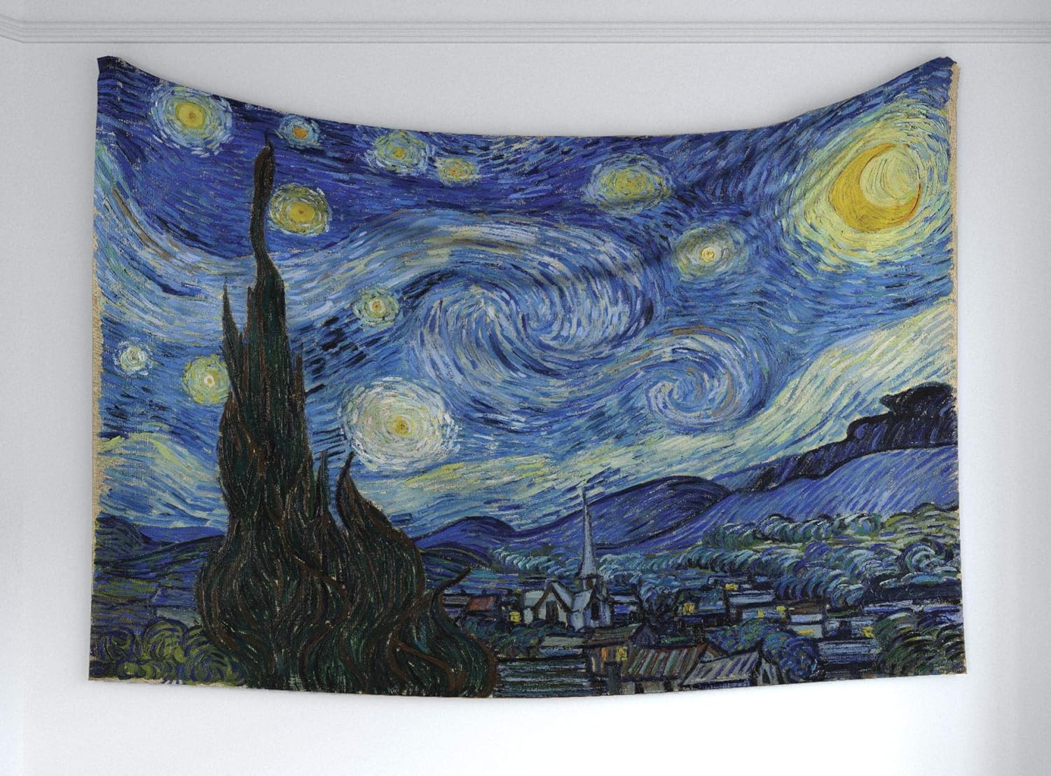 Ambesonne Starry Night Tapestry Famous Painting Abstract Nighttime Scene With Village Fabric Wall Hanging Decor For Bedroom Living Room Dorm 60 X