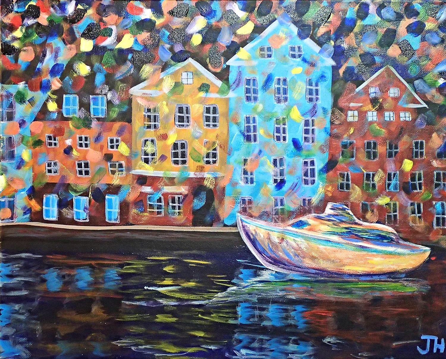 Rozanne Bell Original Acrylic Painting Night Time Harbour