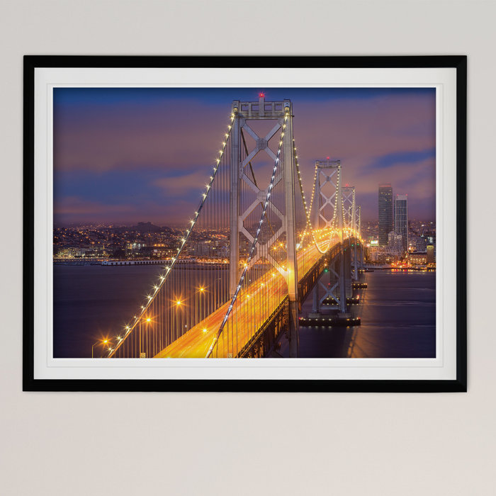 Nighttime On Bay Bridge Framed Acrylic Painting Print