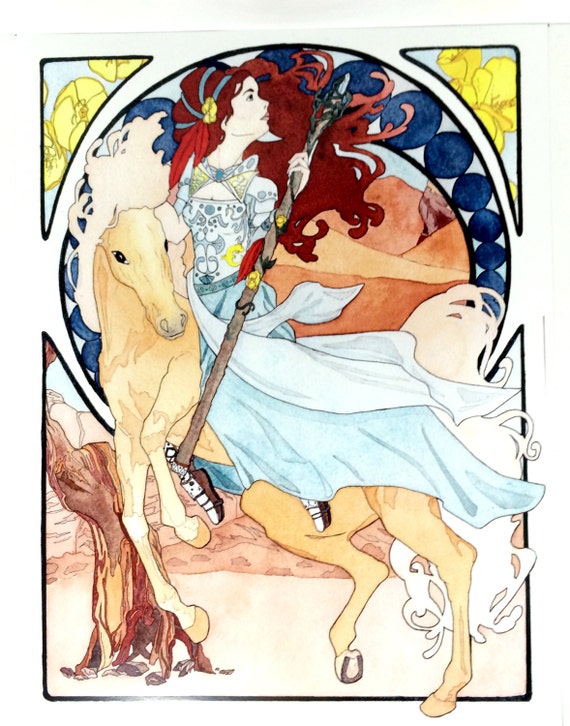 Rider On Horse Art Nouveau Artist Print Watercolor Girl Riding Palomino Horse Wall Art Gift For Horse Lover Horse Lover Gifts Horse Art