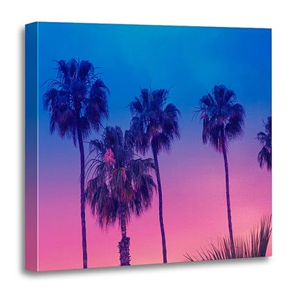 Palm Trees Painting Print On Wrapped Canvas Tree Sunset Easy