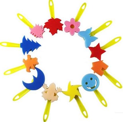 12 Of Pcs Colorful Painting Sponge Stamp Cartoon Foam Brush Set12