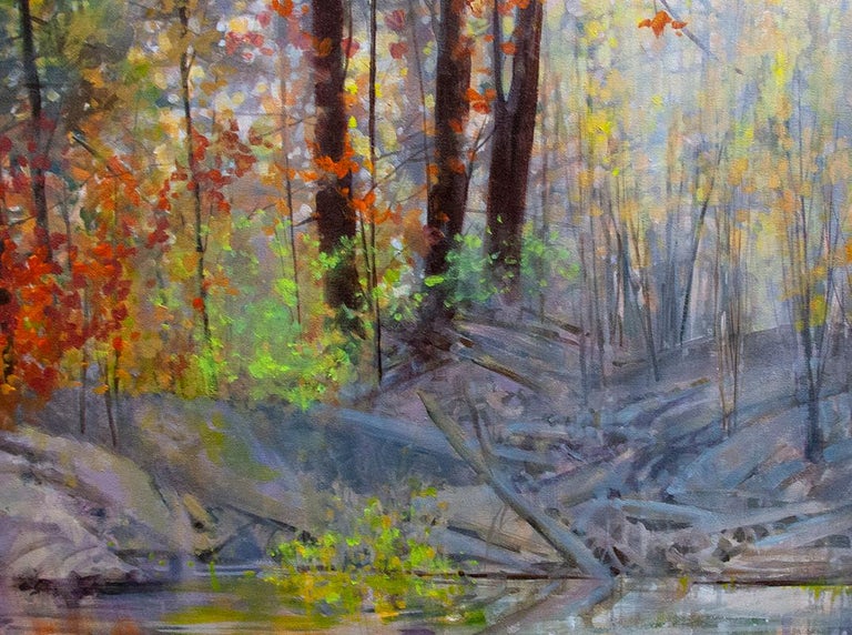 After Rain Autumn Reflections Acrylic Palette Knife Painting