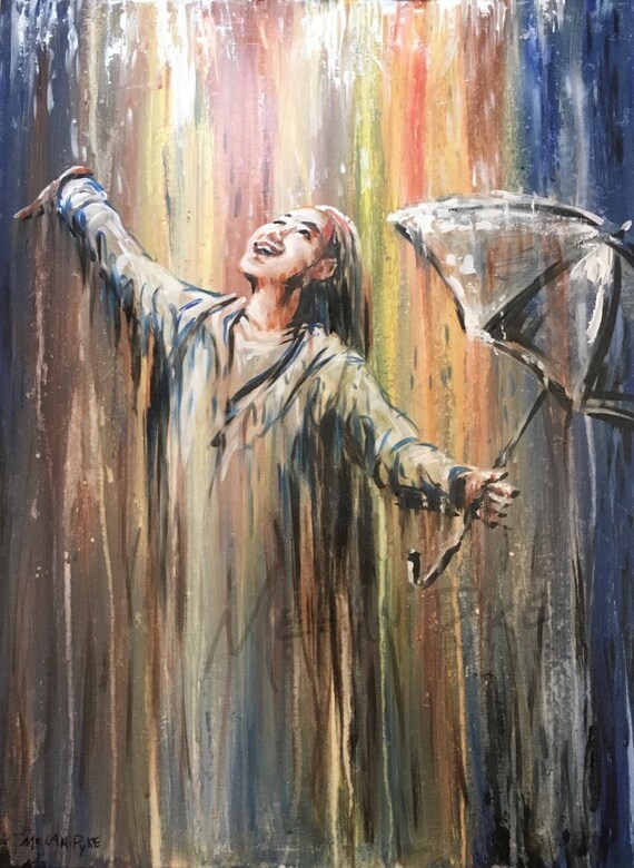 Original Abstract Acrylic Painting Girl Under The Rain By