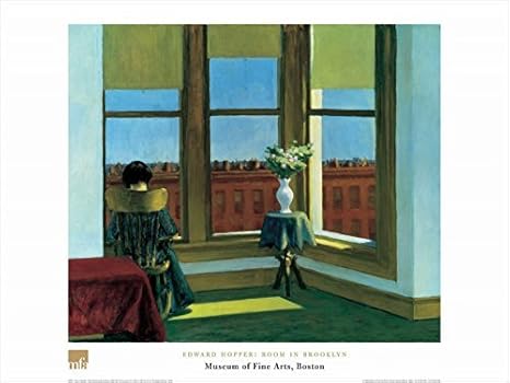 Buyartforless Room In Brooklyn By Edward Hopper 24x32 Art Print Poster Famous Painting Still Life Looking Out Window Flowers Vase Woman In Chair City