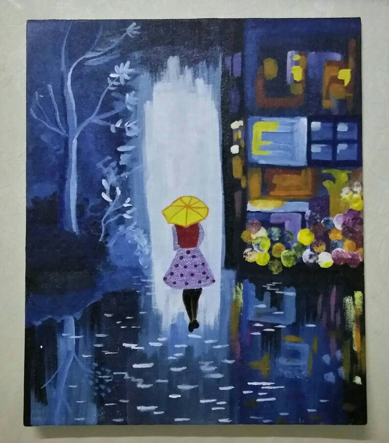 A Girl Walking In The Rain Acrylic Painting On Canvas For