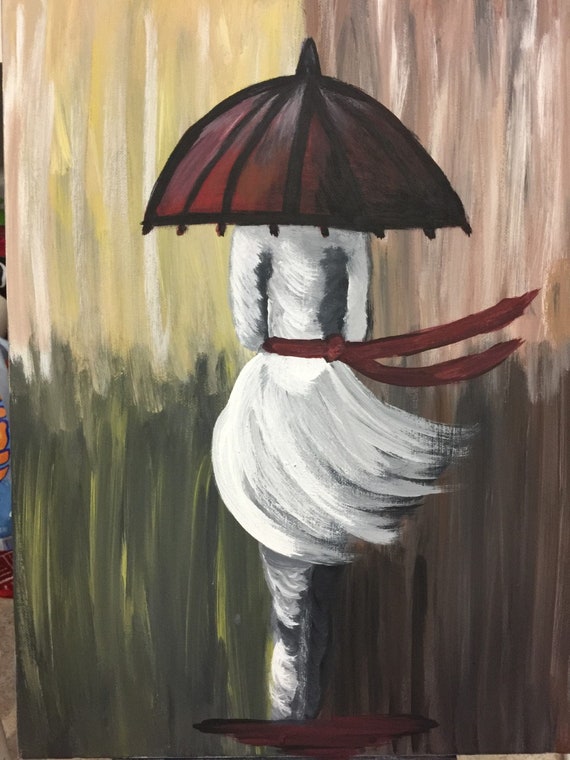 Girl In The Rain Umbrella Art Beginner Acrylic Painting