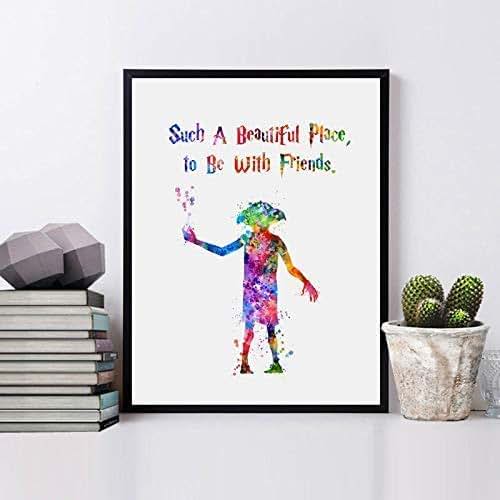 Harry Potter Quotes Poster Watercolor Dobby Nursery Art Gift Decor Painting Color Kids Bedroom Decor 8x10inch No Frame